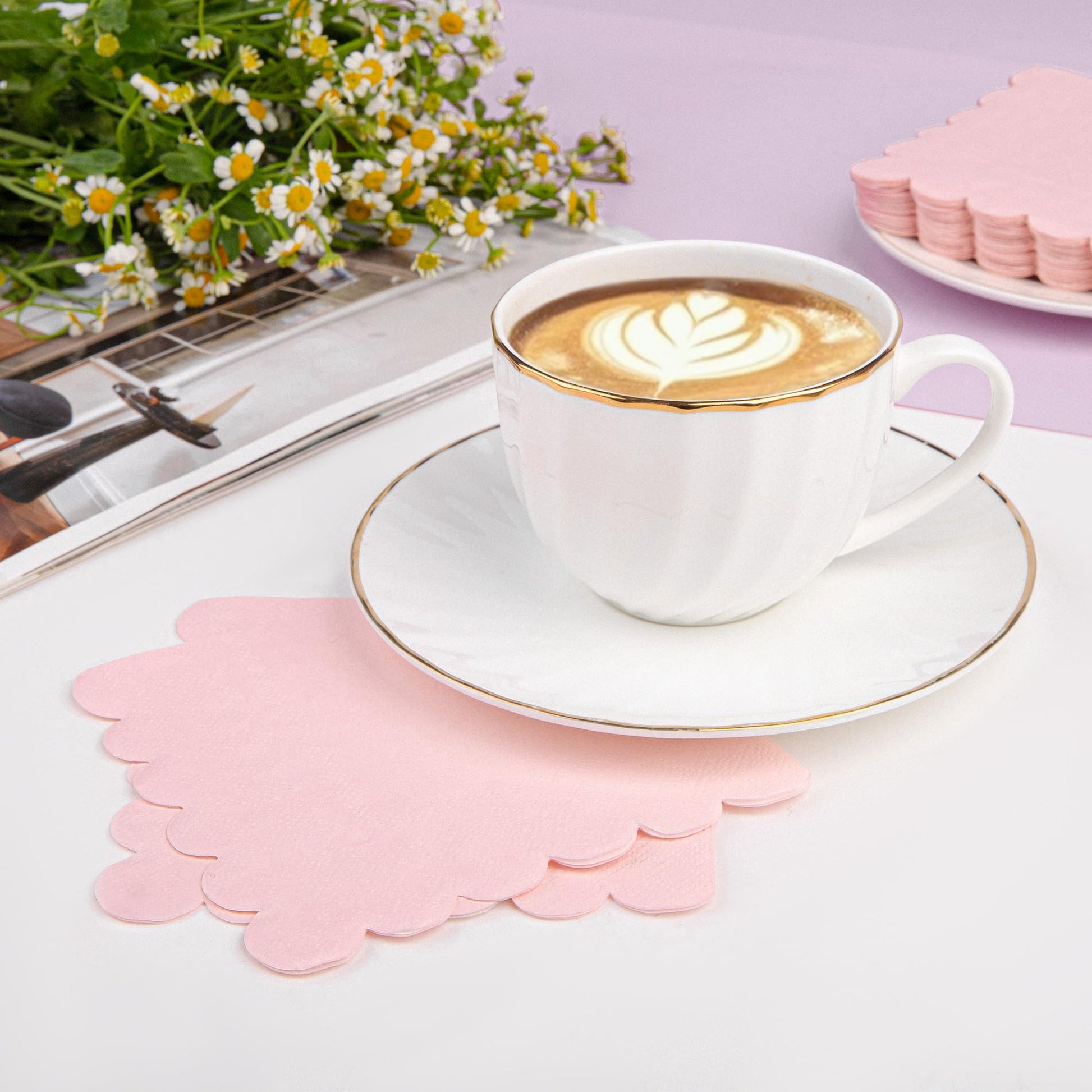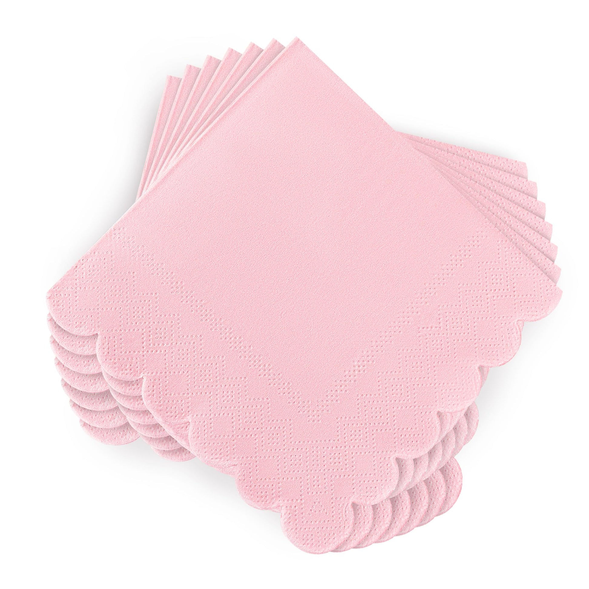 100 Pcs Cocktail Napkins Scalloped Edged Dessert Napkins Folded 5 x 5 Inches Pink Disposable Napkins for Dinner Wedding Birthday Party