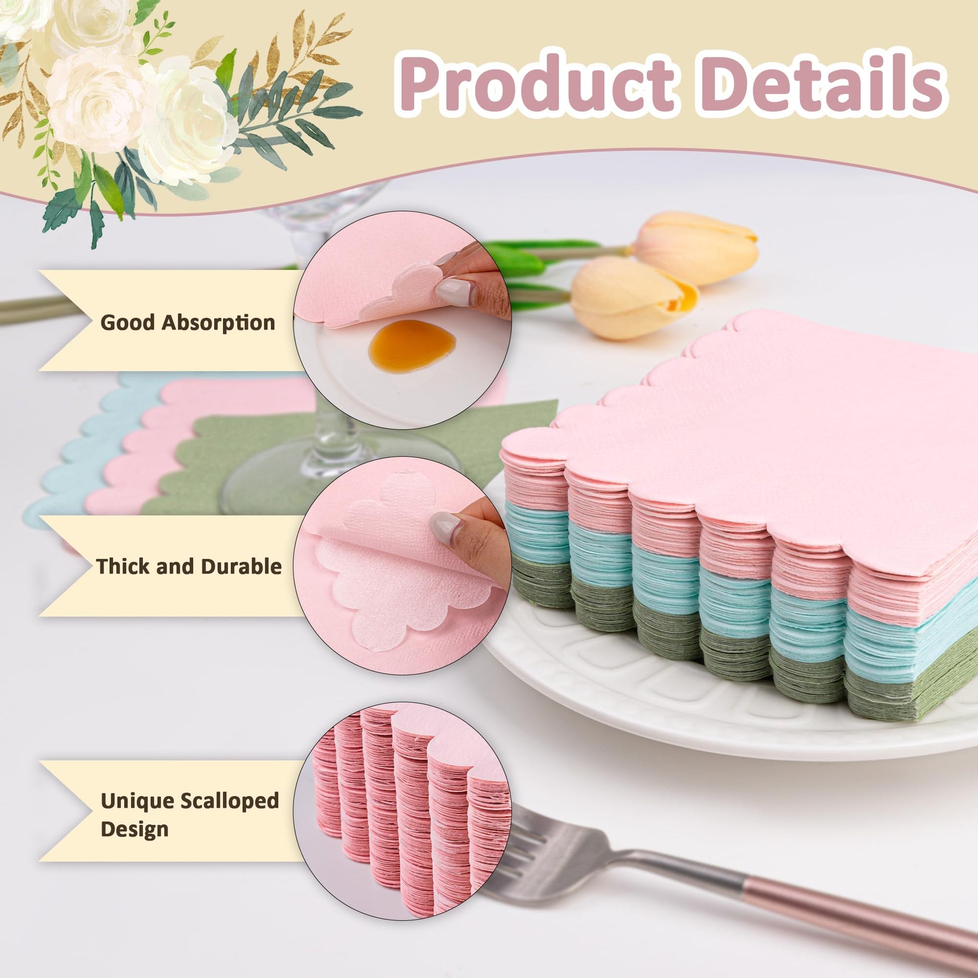 - Exquisite Design: The party napkins adopts unique scalloped edged design, bright colors also match perfectly with all kinds of parties, not only beautiful , but also add a touch of elegance to your party