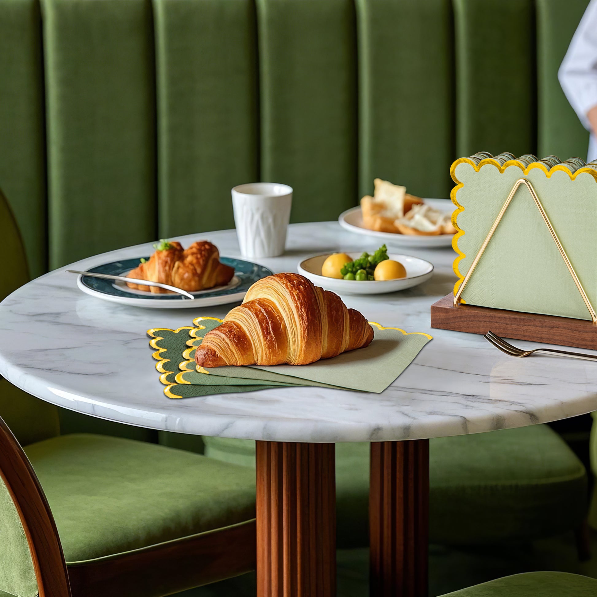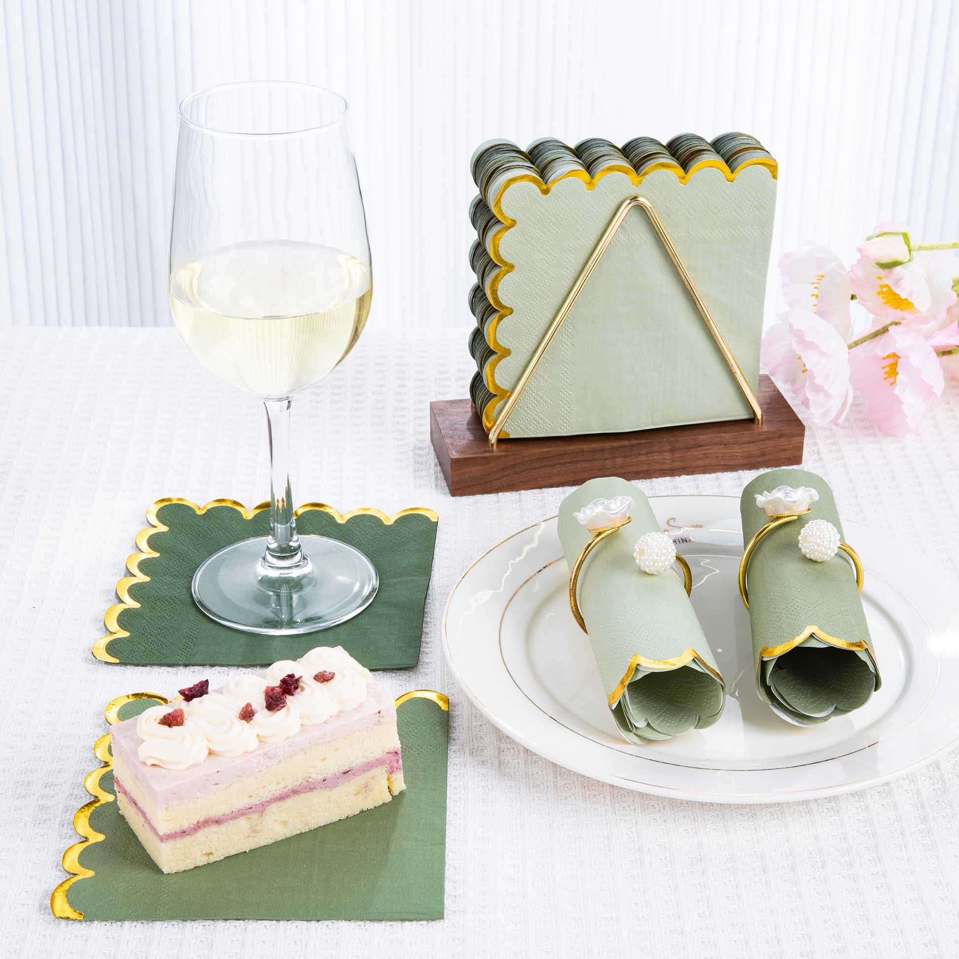 - Napkins Quantity: You will receive 100 sheets of 2-ply gold foil scalloped cocktail napkins. Each napkins measures 5 x 5 inches folded and 10 x 10 inches unfolded, sufficient quantity, enough for your daily life and party use