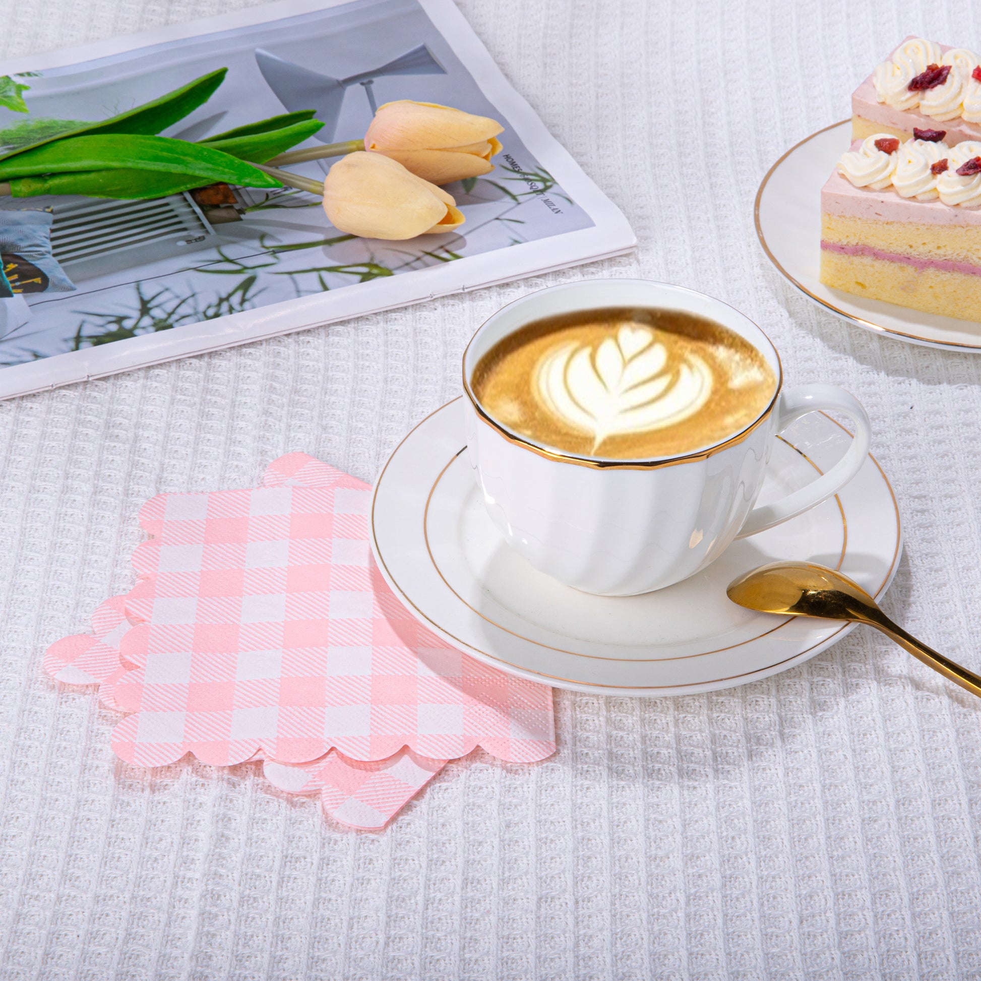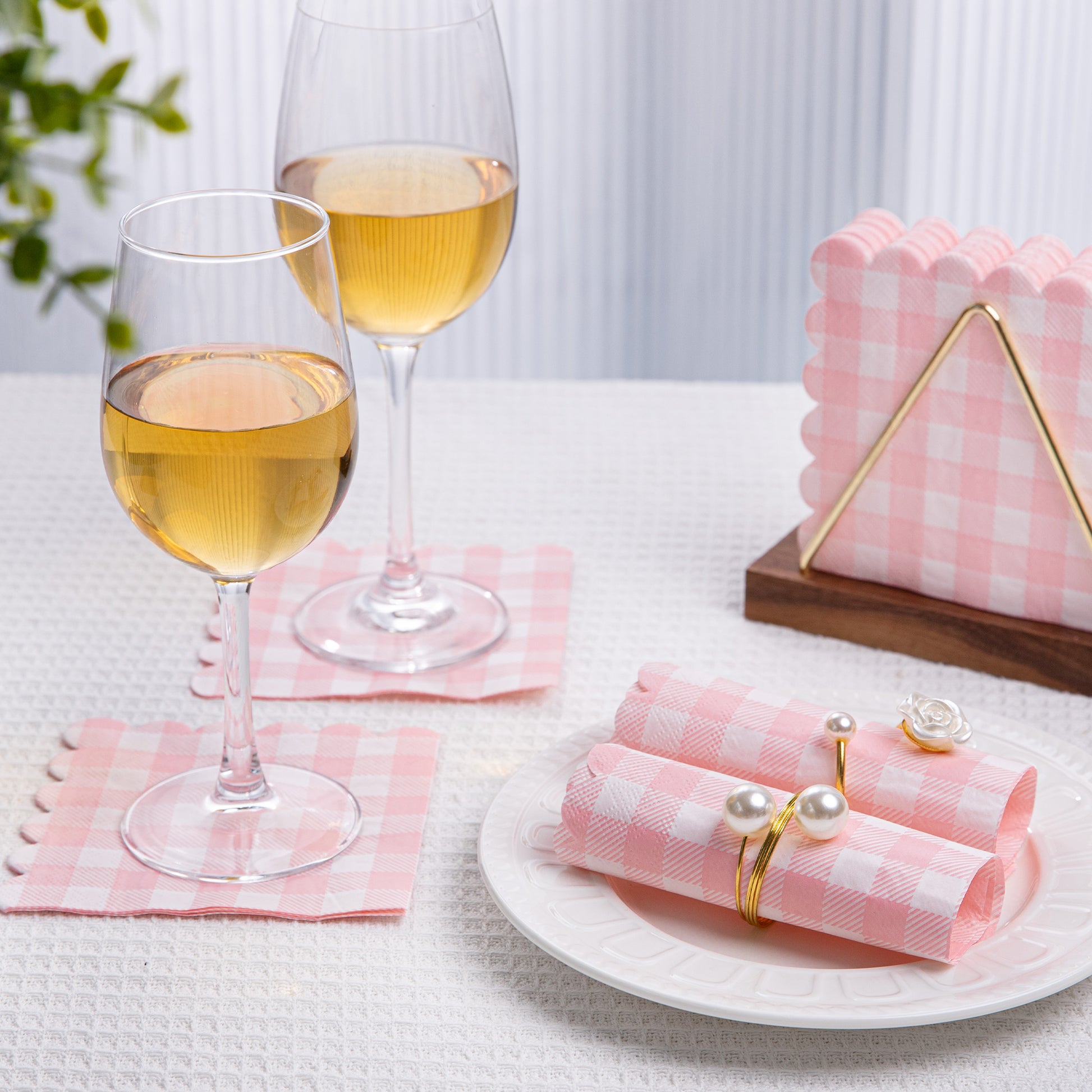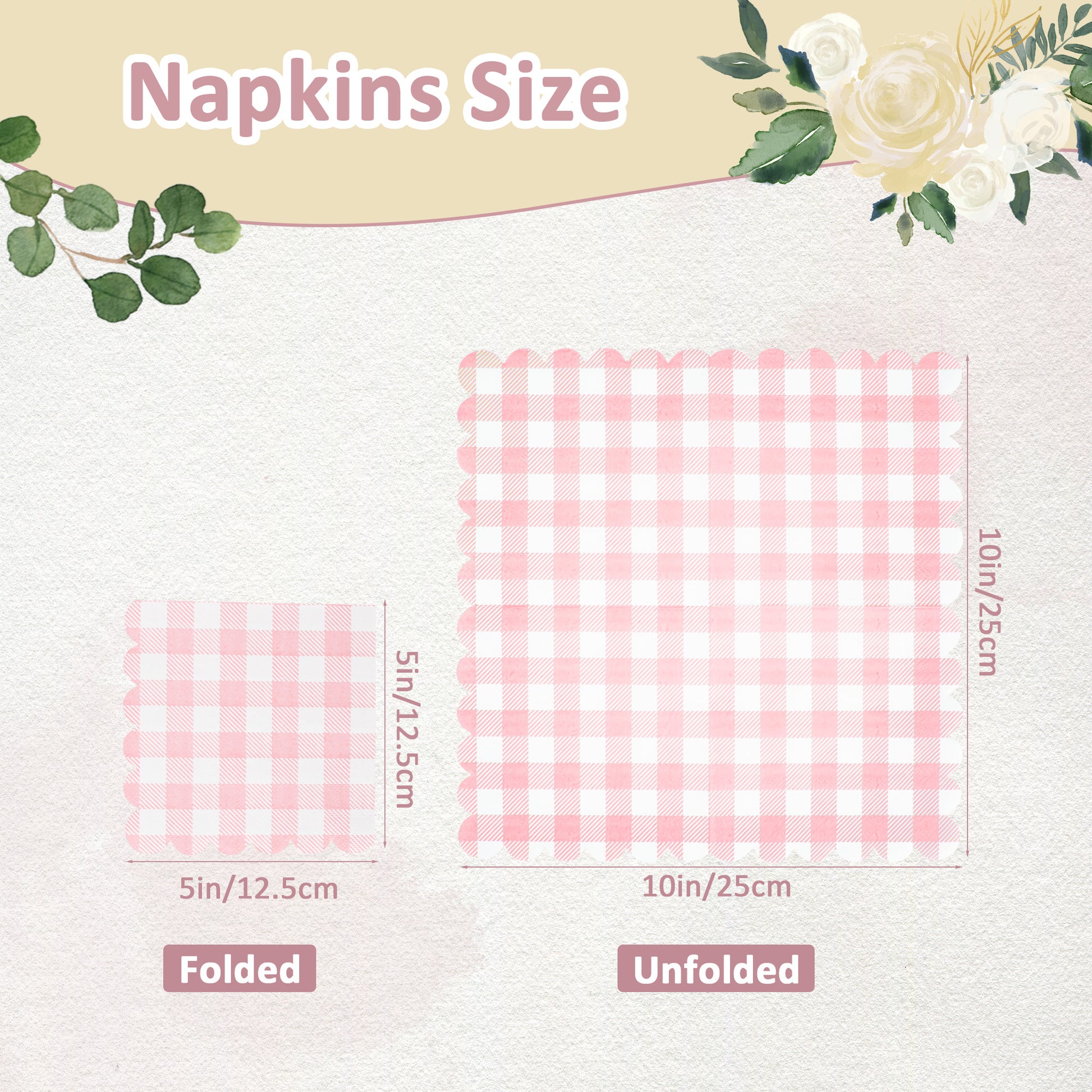 Napkins Quantity: You will receive 100 sheets of 2-ply scalloped plaid napkins. Each beverage napkins measures 5 x 5 inches folded and 10 x 10 inches unfolded, sufficient quantity, enough for your daily life and party use