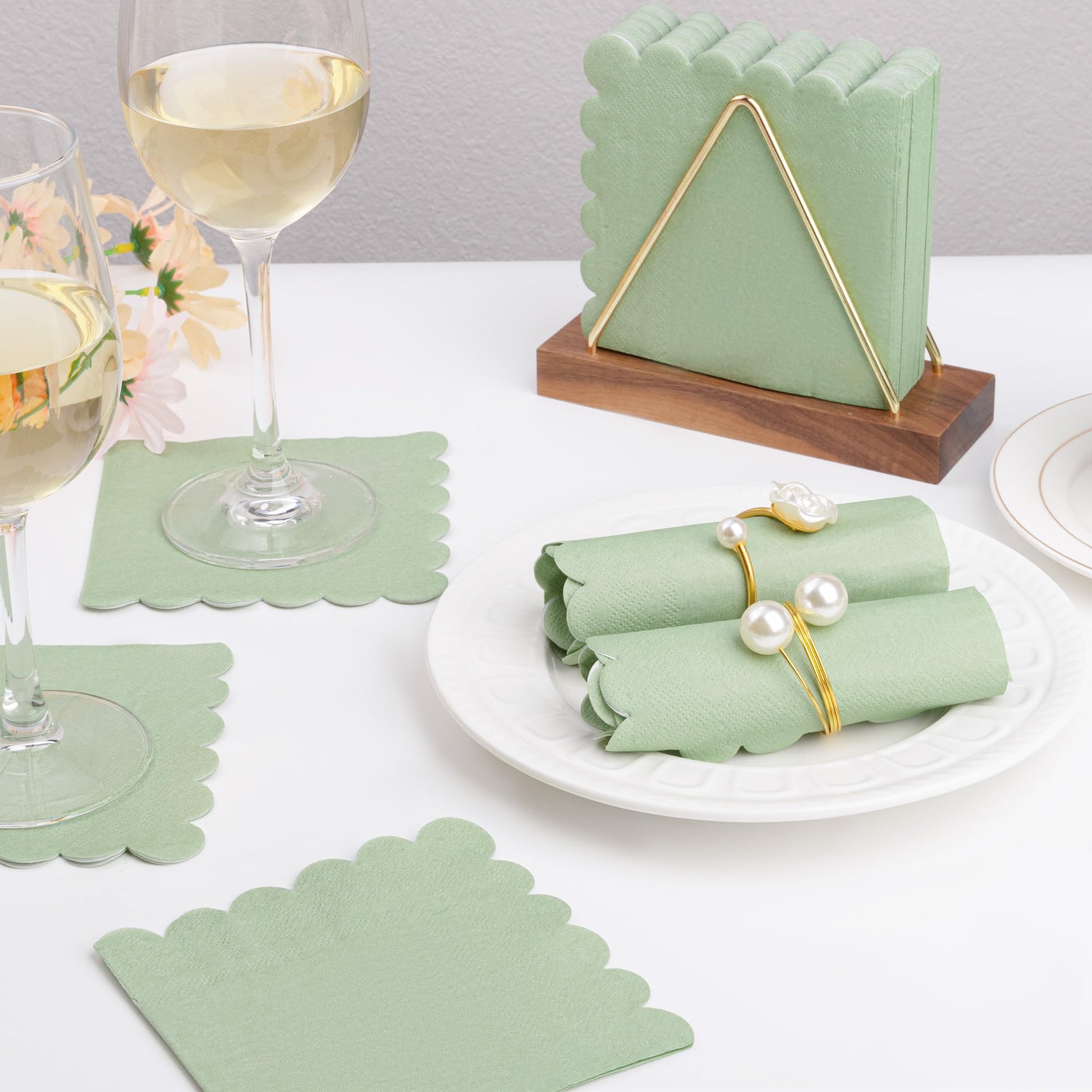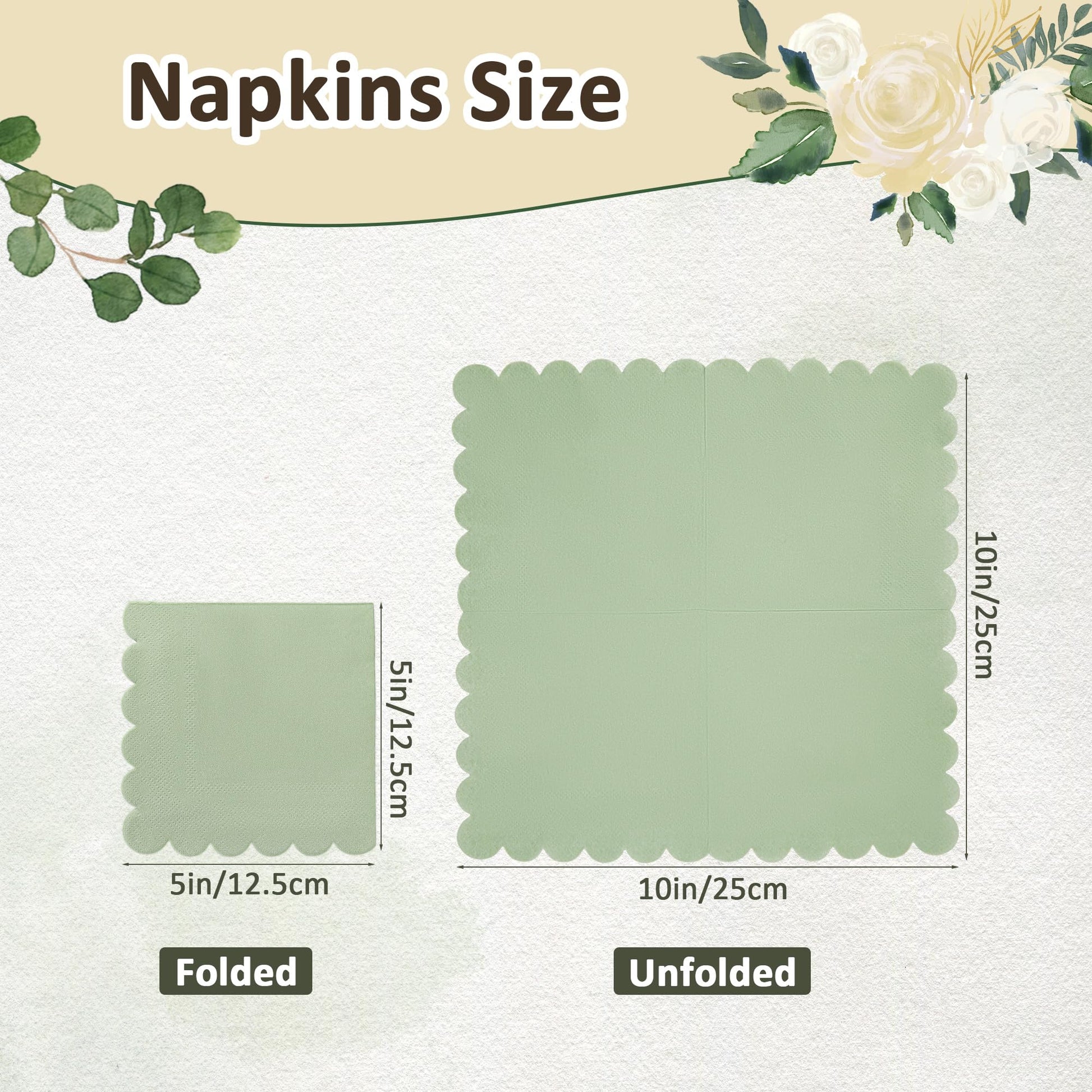 100 Pcs Sage Green Napkins Scalloped Edged Dessert Cocktail Napkins Folded 5 x 5 Inches Disposable Napkins for Dinner Wedding Birthday Party